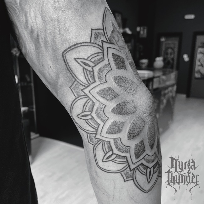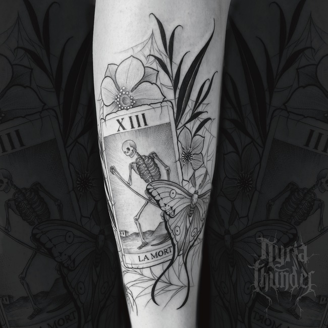 Soy Nyria Thunder, tatuadora profesional desde 2014. Me especializo en línea fina, puntillismo y blackwork, aunque también trabajo el color. Mi enfoque se basa en la calidad, la personalización y la mejora constante de técnicas para ofrecer siempre lo mejor a cada cliente.